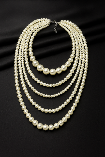 Klasyczna elegancja w nowoczesnym wydaniu – ten naszyjnik z pięcioma rzędami to ponadczasowy dodatek, który nigdy nie wychodzi z mody.