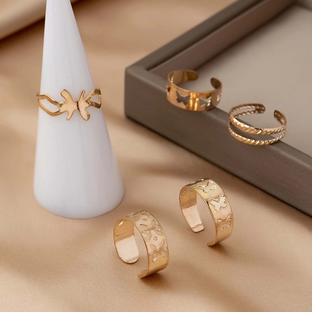 Zestaw pięciu pierścionków na palec u stopy - motyle